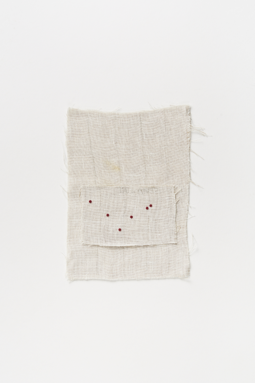 Die Arbeit entstand unter dem Eindruck der Ereignisse des 7. Oktobers, 2023. Im Prozess sind Arbeiten, die sich auf die seitdem nachfolgenden Ereignisse beziehen. Sie ist Teil der Werkserie der „textilen Stücke“, in welcher ich auf sensible und intuitive Weise Themen verarbeite, die mich persönlich berühren.
